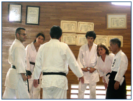 Ёшиока Сенсей демонстрировал техники направления Сейсейкай. Главный акцент делается на постоянный болевой контроль уке. По чёткости выполнения приёмы Сейсейкай далеки от Хонбу, Рю и Ренсинкая, но также эффективны. После тренировки с Ёшиока Сенсеем у нас была запланирована встреча с Мацуо Масадзуми Сенсеем, учеником и помощником Терада Сенсея. Мацуо Сенсей вспомнил меня, т.к. мы неоднократно встречались на семинарах в России. Воспользовавшись встречей, мы передали подарки для Терада Сенсея от учеников СФЁА.