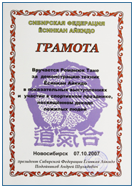 07.10.2007г. - участие в показательных выступлениях по Ёсинкан айкидо на спортивном празднике, посвящённому декаде пожилых людей.